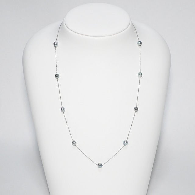 ナチュラルグレーのステーションネックレス。長さ調節ができて幅広い場面でお使いいただけます。 品番/294252 真珠/あこや真珠 パールサイズ/4.5-5.0㎜ 変形珠 チェーンスライド式/PT 最長約48.5cm ※真珠は自然素材で個体差がございます。 画像と色合いが若干異なる場合がございます。 グレードは同じになります。 ※こちらの商品には本真珠特有の天然キズが見られる場合がございます。 ご注文を受けてから2~3営業日以内に発送予定